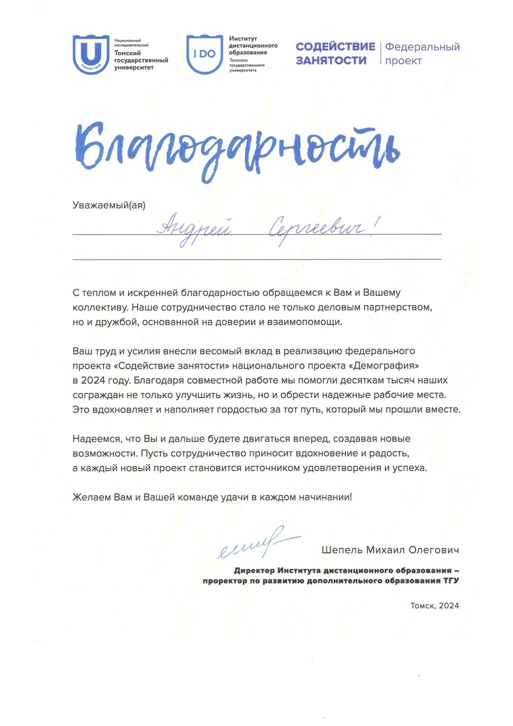 Присвоен статус федерального дистанционного центра обучения по проекту «Активные меры содействия занятости» (нацпроект «Кадры»)